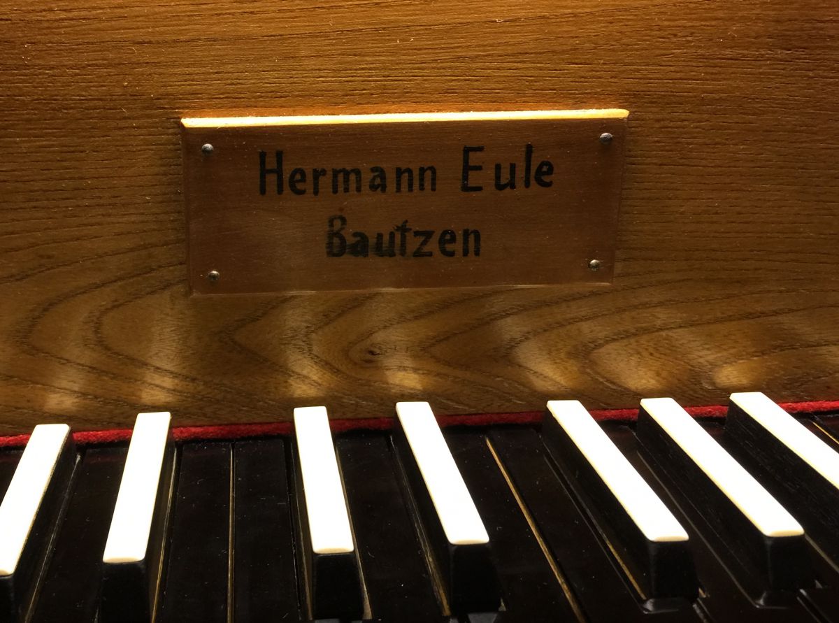 1954 Eule 3/P 38 mechanisch pneumatisch Die 1954 erbaute Orgel ersetze urpsrünglich eine Walcker-Orgel in der Leipziger Markuskirche im Stadtteil Reudnitz. Die baufällige Kirche wurde 1978 gesprengt und die Orgel nach Dresden verkauft. |