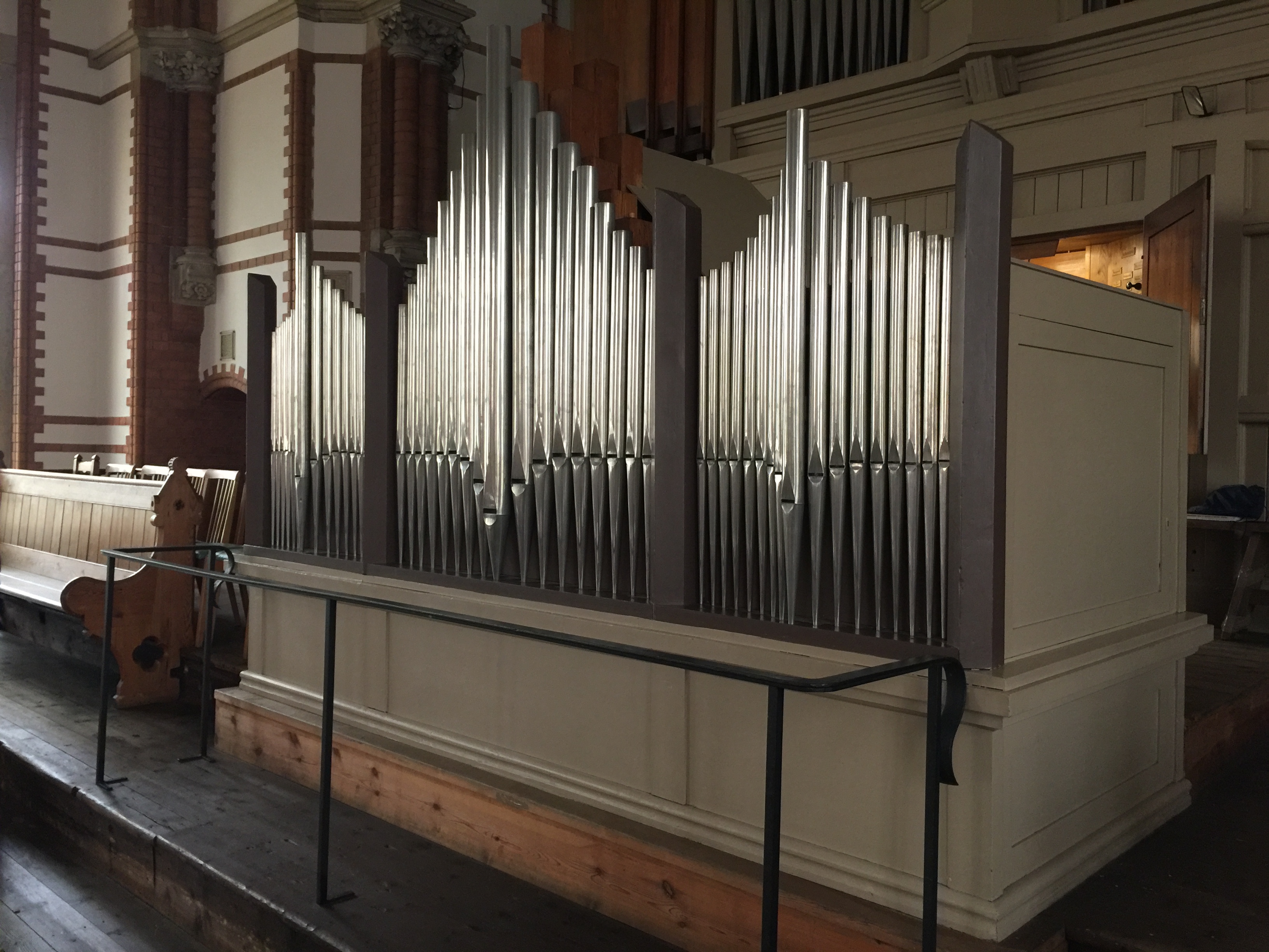 30. Principal-Baß 16' 31. Subbaß 16' 32. Octave 8' 33. Gedackt 8' 34. Choralbaß 4' 35. Mixtur 5-fach 36. Posaune 16' 37. Trompete 8' 38. Singend Cornett 2' |